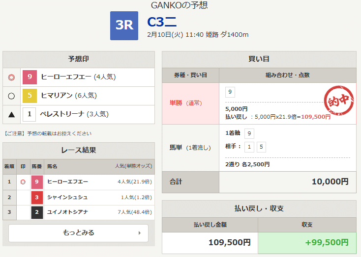 2/10は、10万以上の払い戻しのだけでも3レースありました!